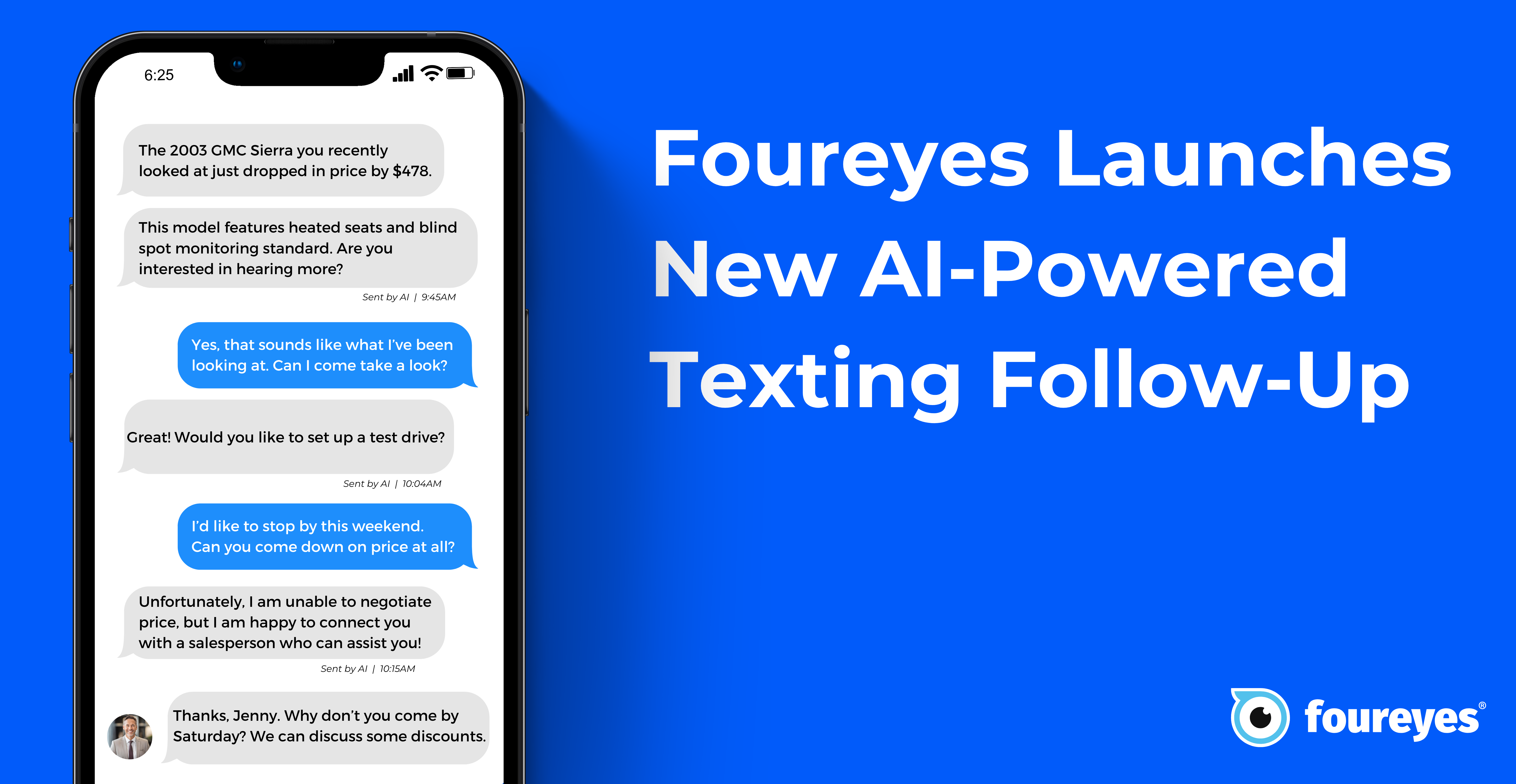 Foureyes Changing the Follow-up Game with Inventory-based TextingSee how the latest Foureyes innovation further helps dealerships match prospects to specific inventory.